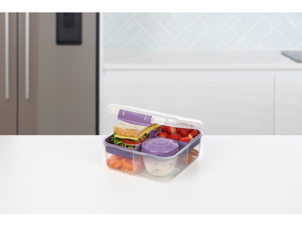 Sistema TO GO Háromkamrás doboz joghurttartállyal 1,25 l, három kamrából áll, amelyek lehetővé teszik a különböző típusú élelmiszerek szétválasztását.