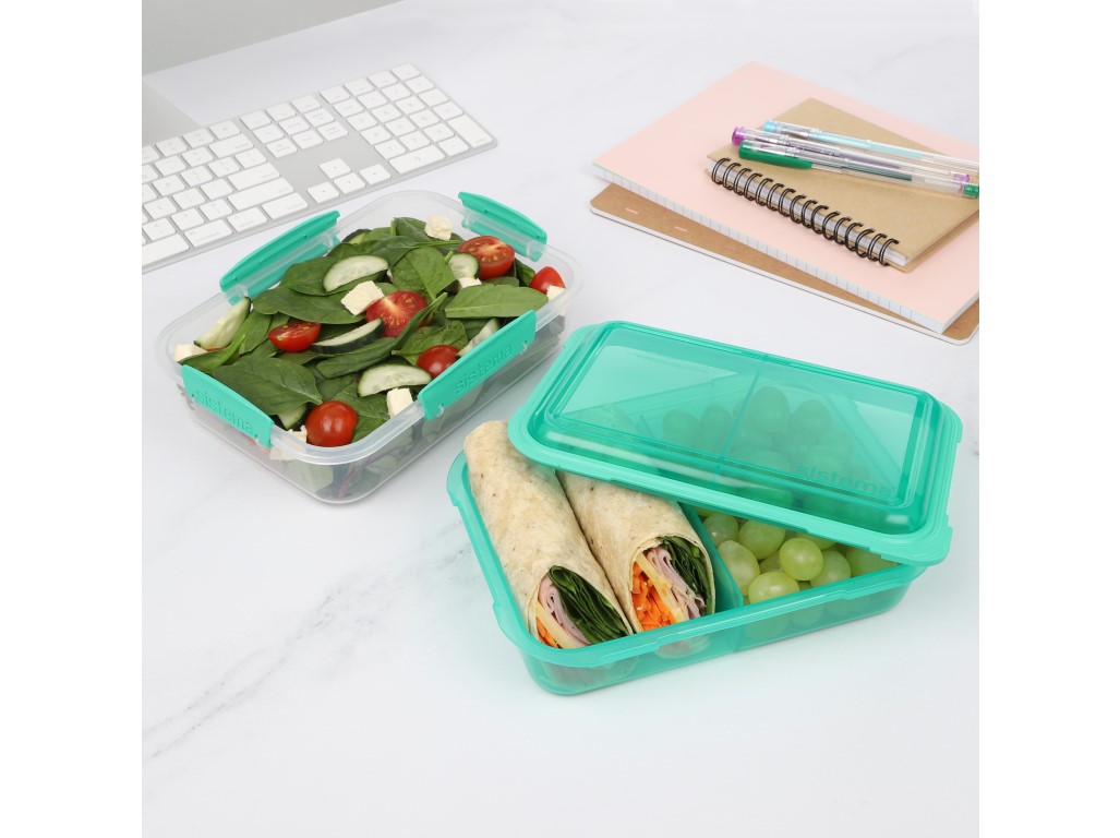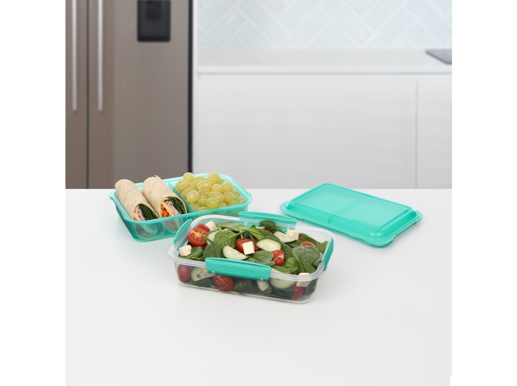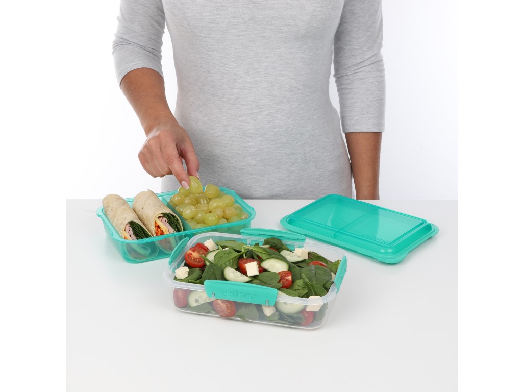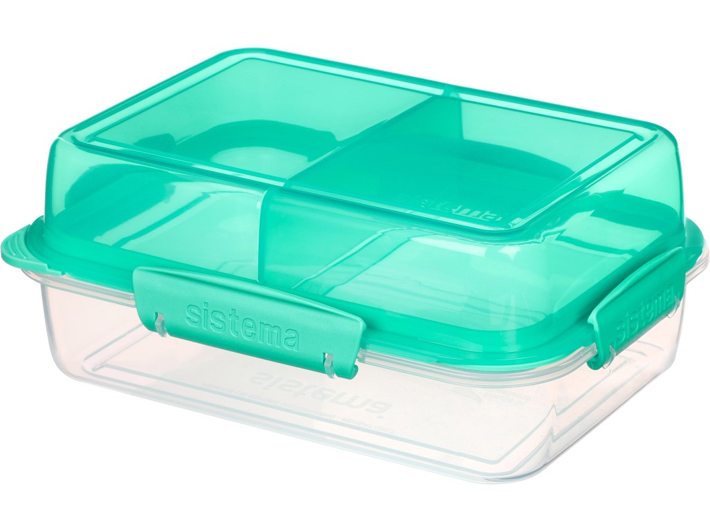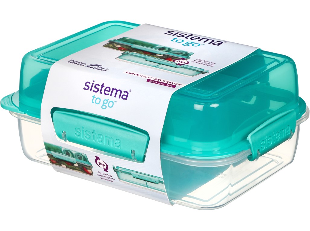 A Sistema TO GO Flip and Nest praktikus uzsonnás doboz, amely három különálló rekeszben teszi lehetővé az ételek tárolását.
